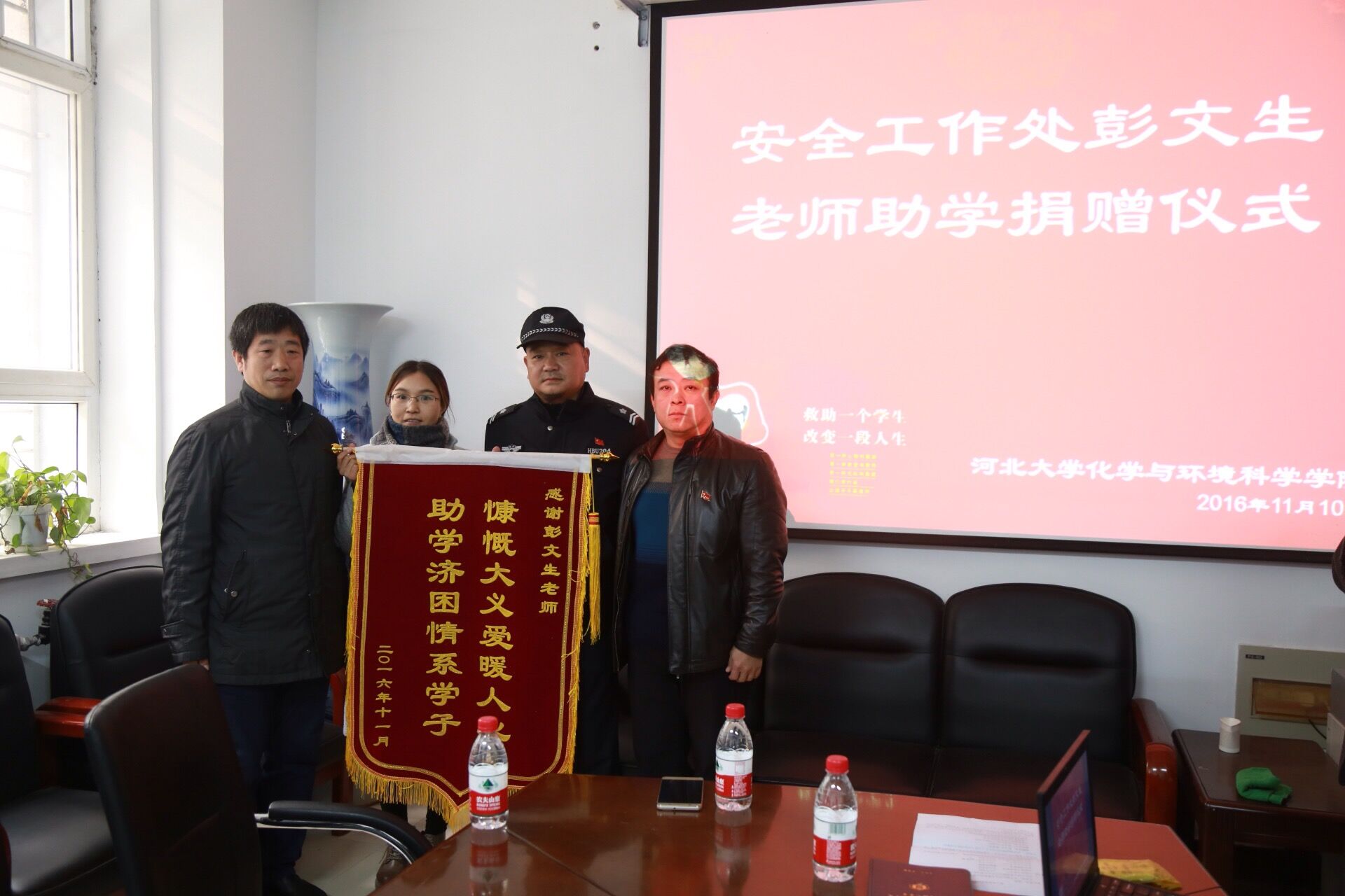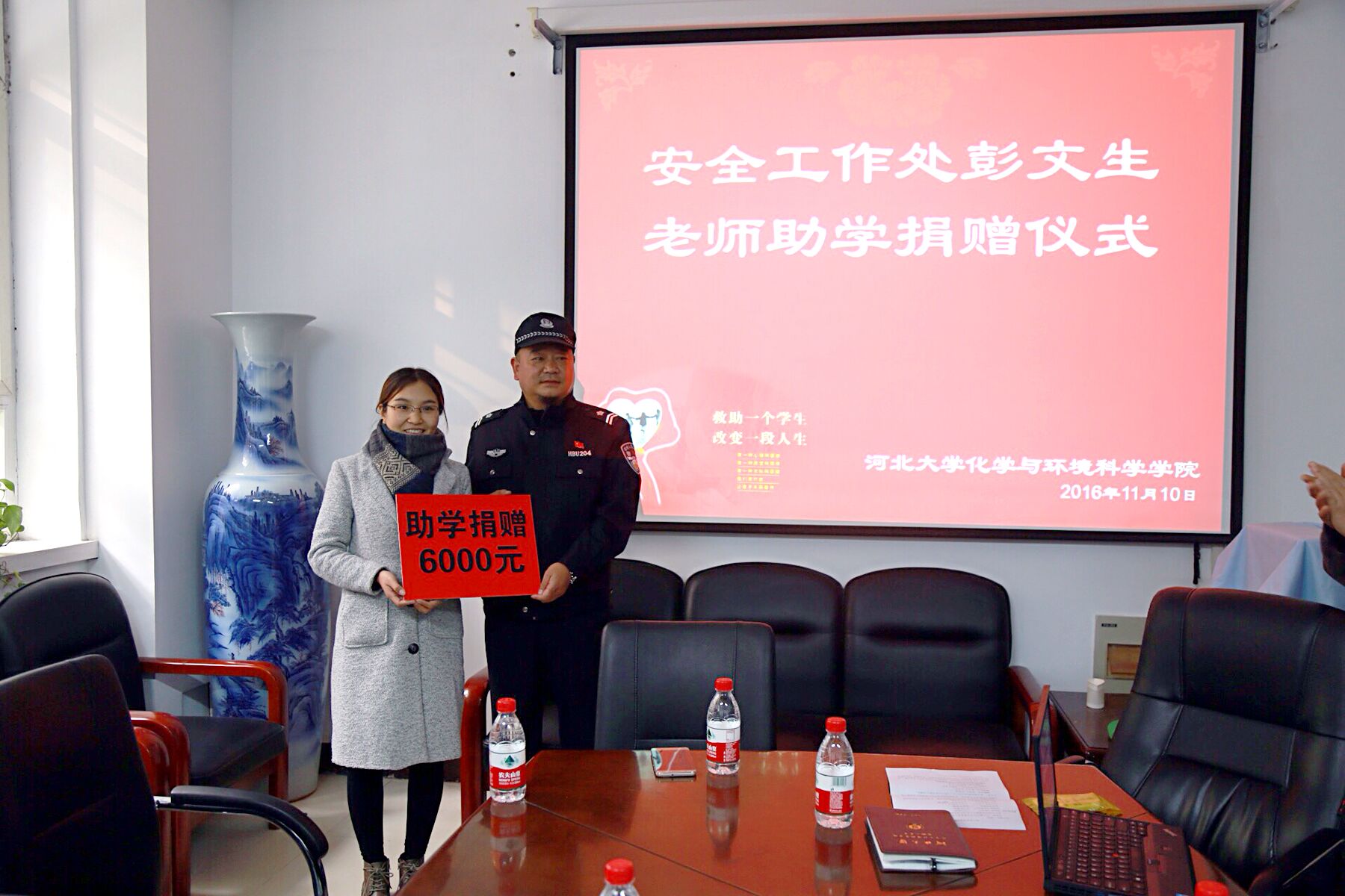 11月10日上午,安全工作处彭文生老师爱心助学捐赠仪式在化学与环境科学学院一楼会议室举行。参加本次捐赠仪式的有化学与环境科学学院及安全工作处的主要负责同志。