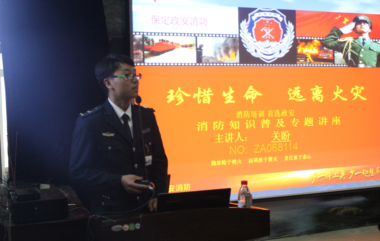 在生科院学术报告厅的消防知识培训会上,市政安政消防宣传中心关盼教官通过一个个真实鲜活的火灾事故案例,让大家深刻感受到火灾的危险性和残酷性。他还重点讲解了高校实验、寝室防火用电的基本知识、消防器材的种类和使用方法和发生火灾后的应急措施,并现场演示了常规消防器材的操作方法。