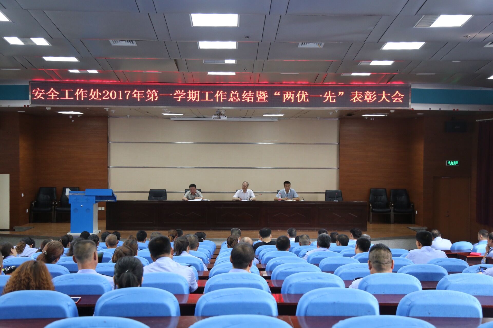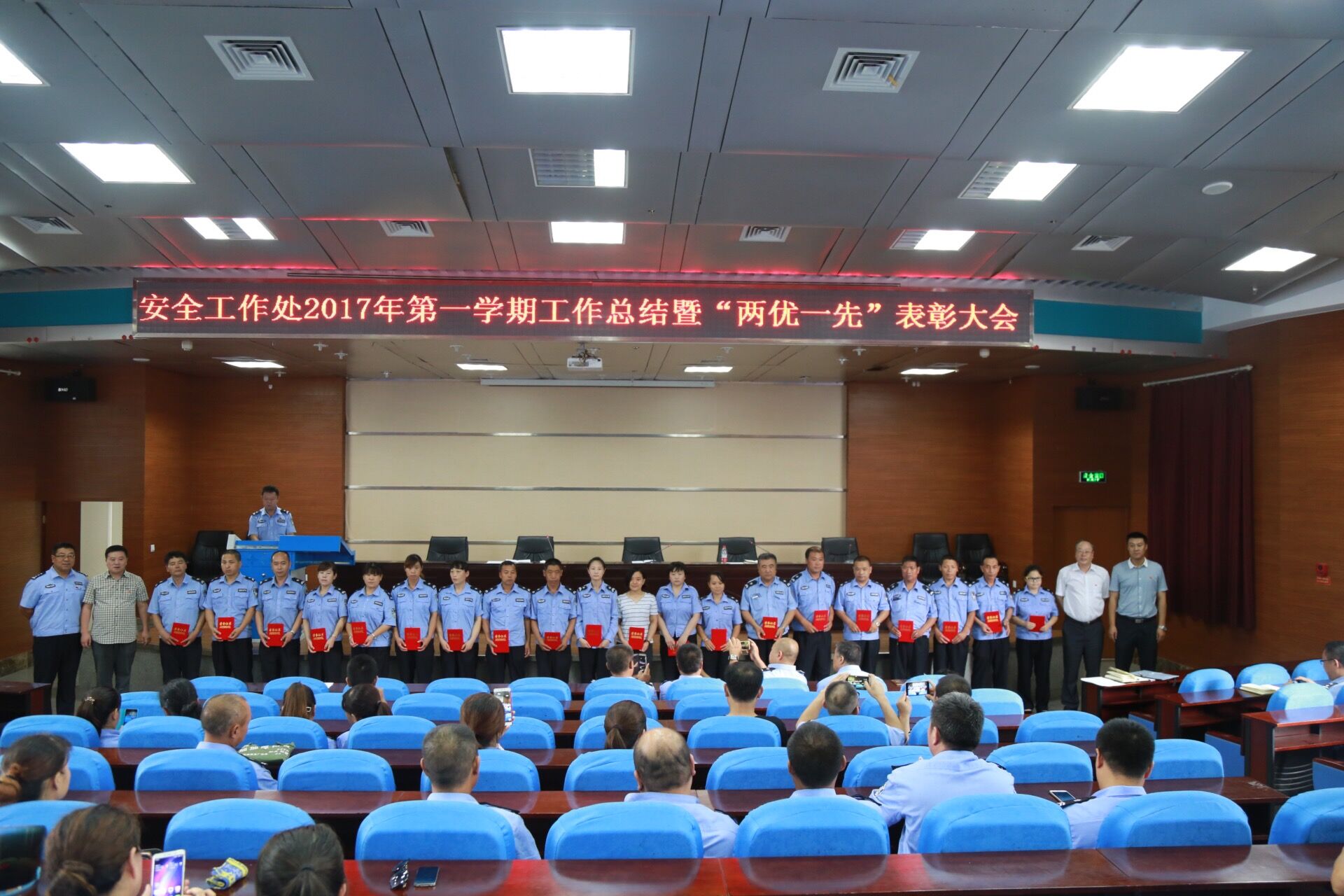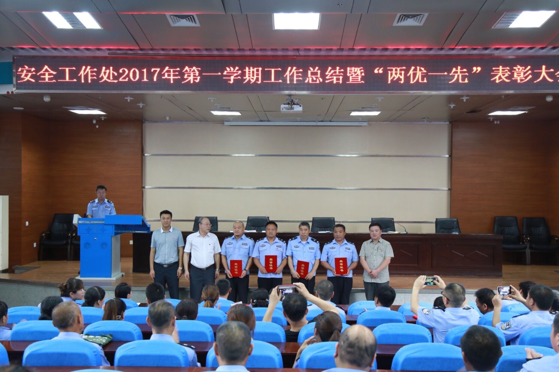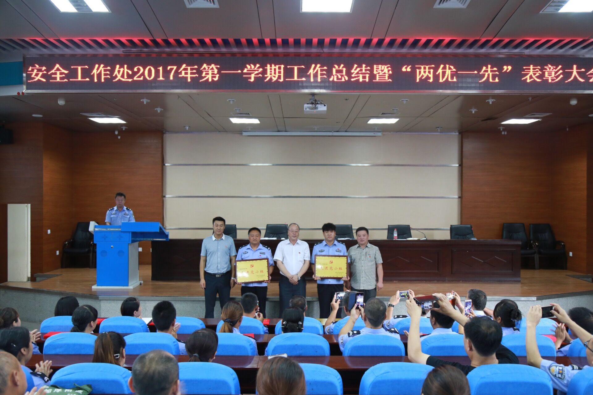 7月5日上午,安全工作处在逸夫楼201报告厅召开学期末工作总结暨“两优一先”表彰大会。安全工作处全体在编人员、劳务派遣人员参加会议。会议由副处长付卫华主持。