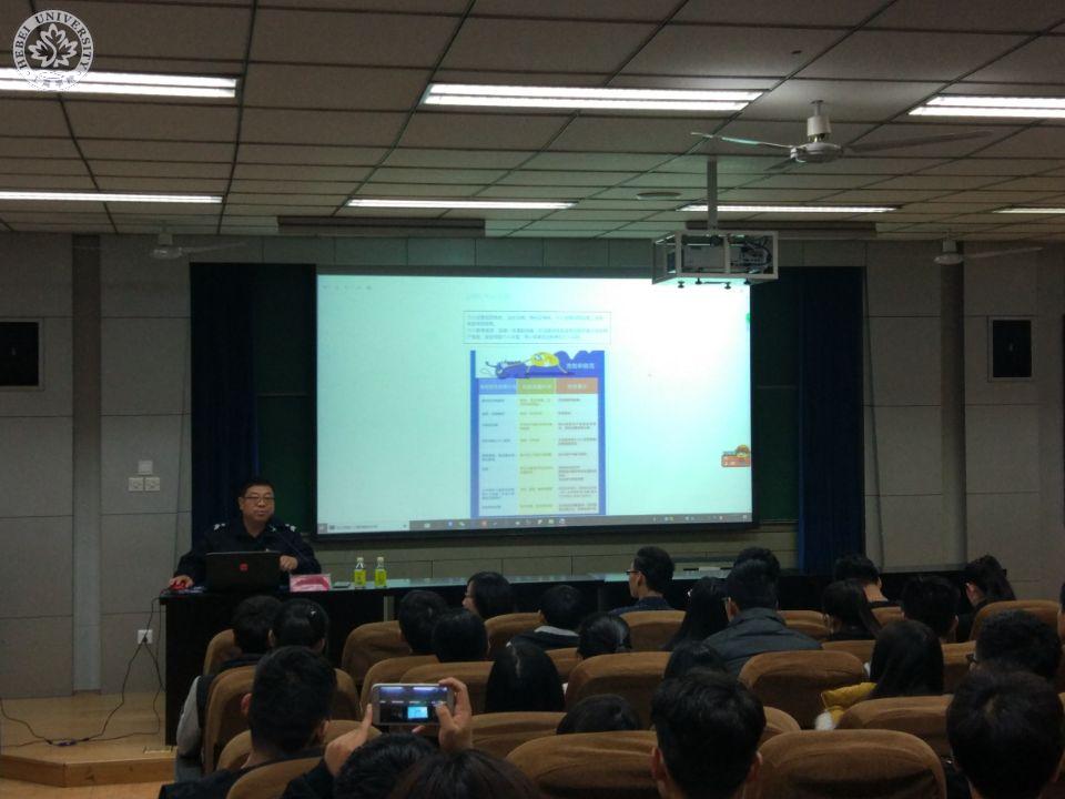 11月9日中午,我院生活园区学生教育管理中心在A2—208举办了消防安全专题培训,学校安全保卫处治安二科科长程国强,保安队队长杨广利作了题为“关注消防 建设书院 共享平安”的专题讲座。学院2015、2016、2017级各班安全委员及康桥社150余人参加了培训。本次讲座以案例讲解形式介绍了校园消防安全知识,并全面讲解了防火、防盗、防诈骗、防交通意外、防淹亡、防校园贷的知识。讲座内容充实生动,主讲人幽默风趣,会场掌声不断,气氛热烈。