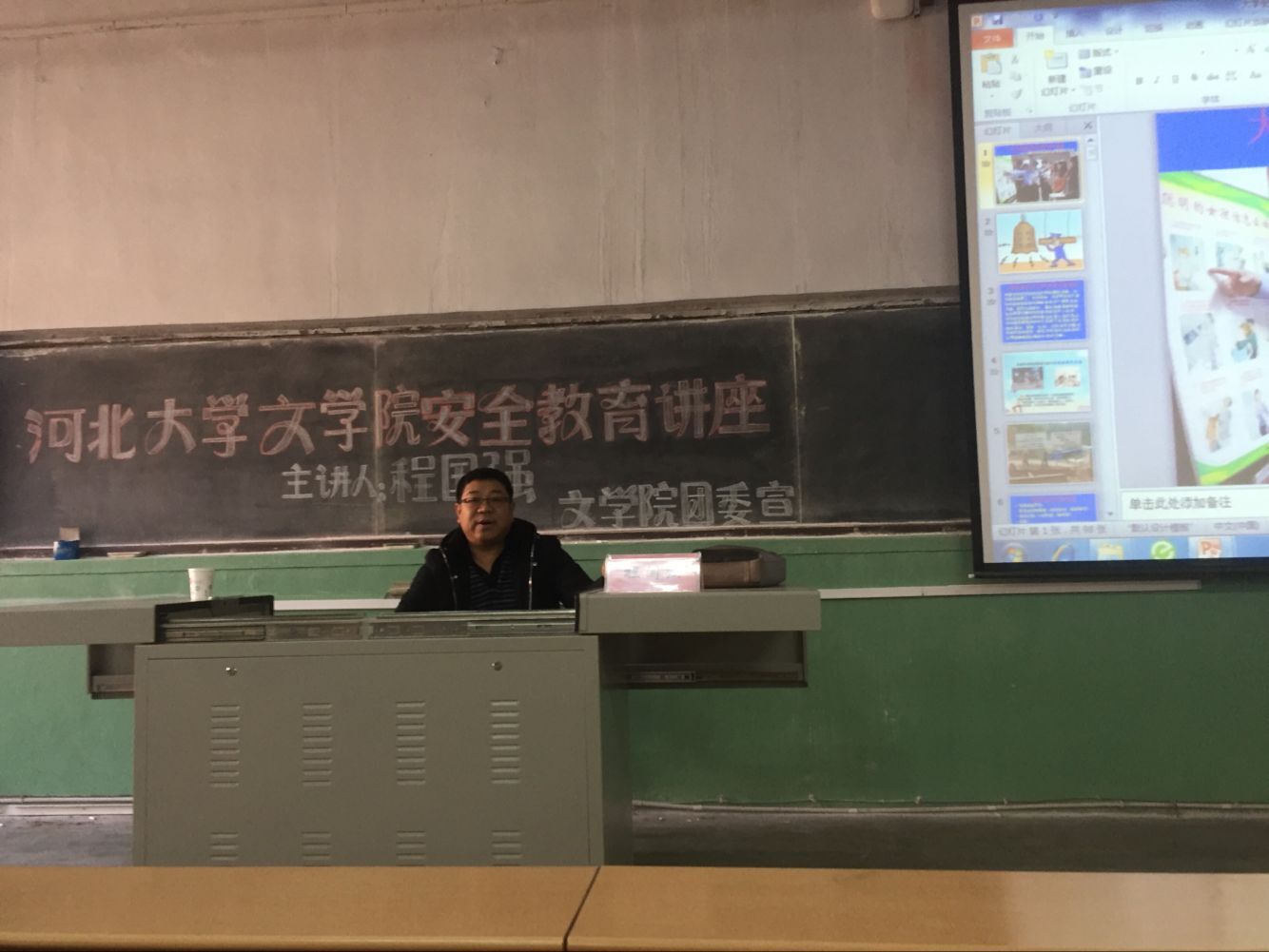 12月22日上午,文学院团委在一教电阶举办了安全教育专题讲座,安全工作处治安二科科长程国强为文学院2017级同学做了关于安全教育的专题讲座。本次讲座以案例讲解形式介绍了校园防诈骗、防偷盗等相关内容。讲座内容充实生动,会场掌声不断,气氛热烈。