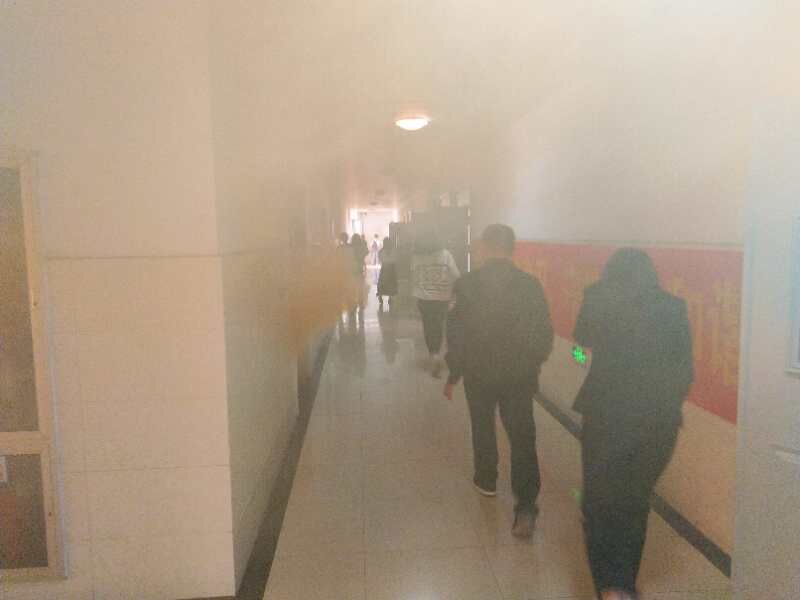 首先,江峰指导员为同学们消防知识的培训,对灭火器使用的要点和注意事项等理论知识进行了重点讲解。 消防知识培训后,学院师生在逸夫楼西配楼进行了疏散逃生演练,当模拟火灾地点升起烟雾和警报响起时,各楼层安全负责人组织实验室学生用湿毛巾捂住口鼻,靠近墙面弯腰有序地快速疏散撤离。