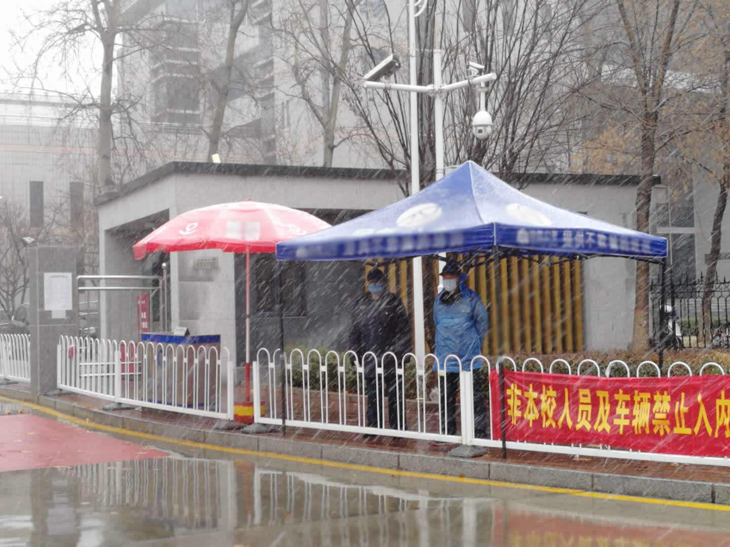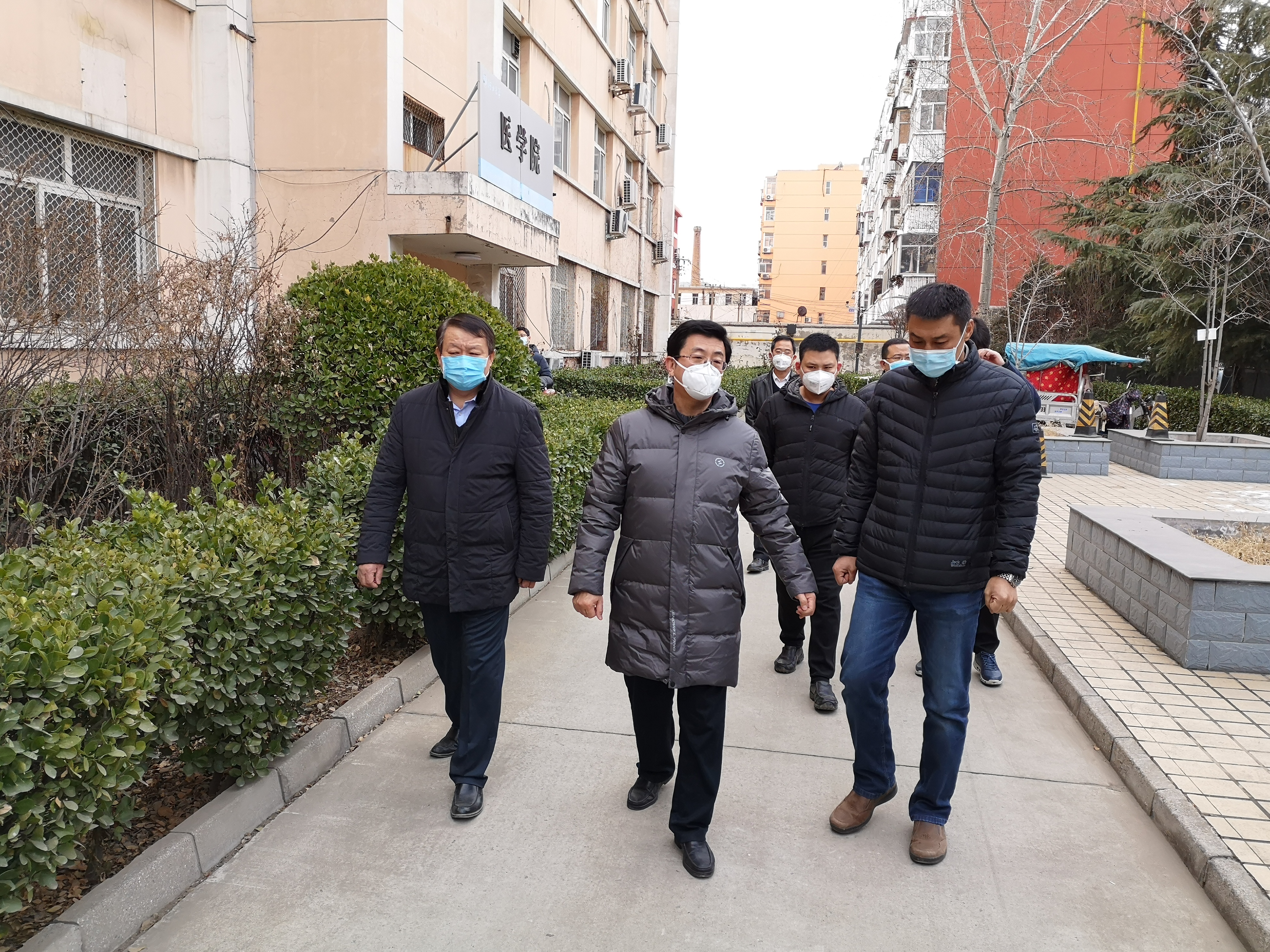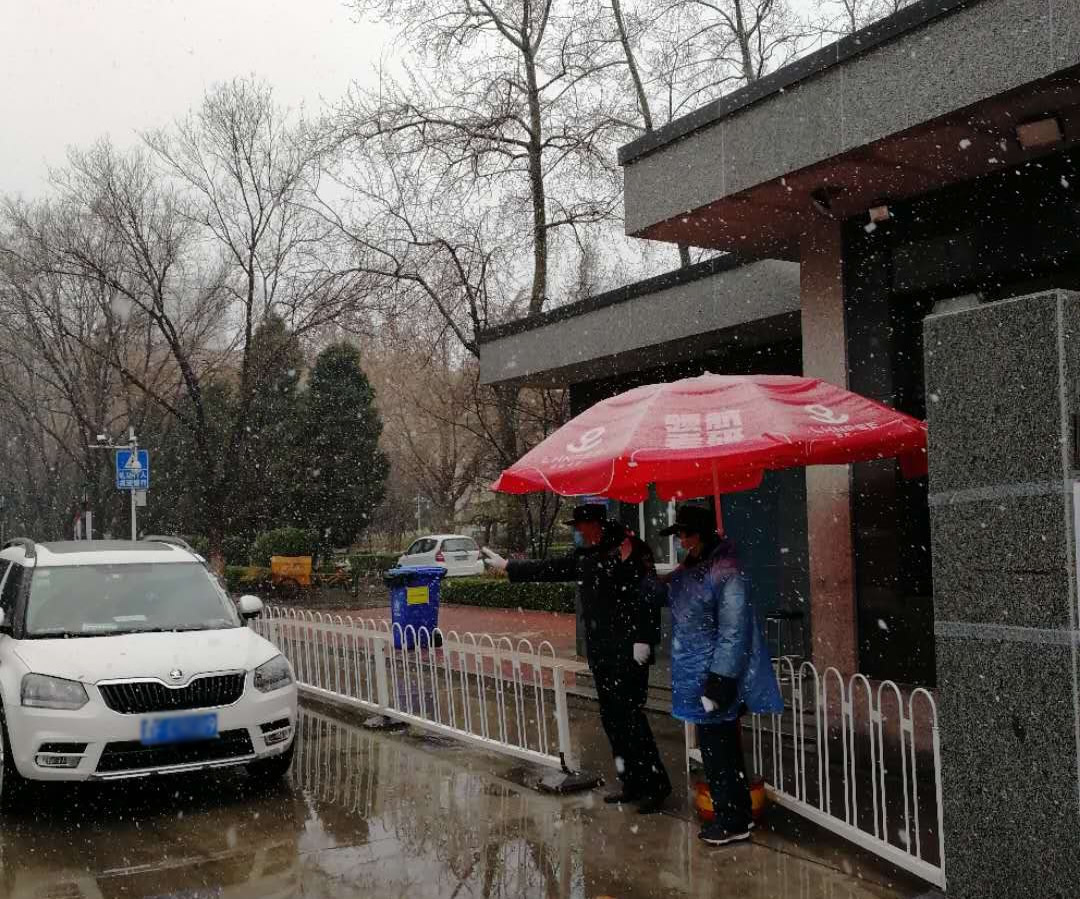 校卫队管理科国玉全、杜启哲、杨宝争、李海涛等4名党员负责五四路校区门卫值班,不分昼夜,不畏风雪,克服各种管控压力,始终坚持盯守在抗“疫”一线。