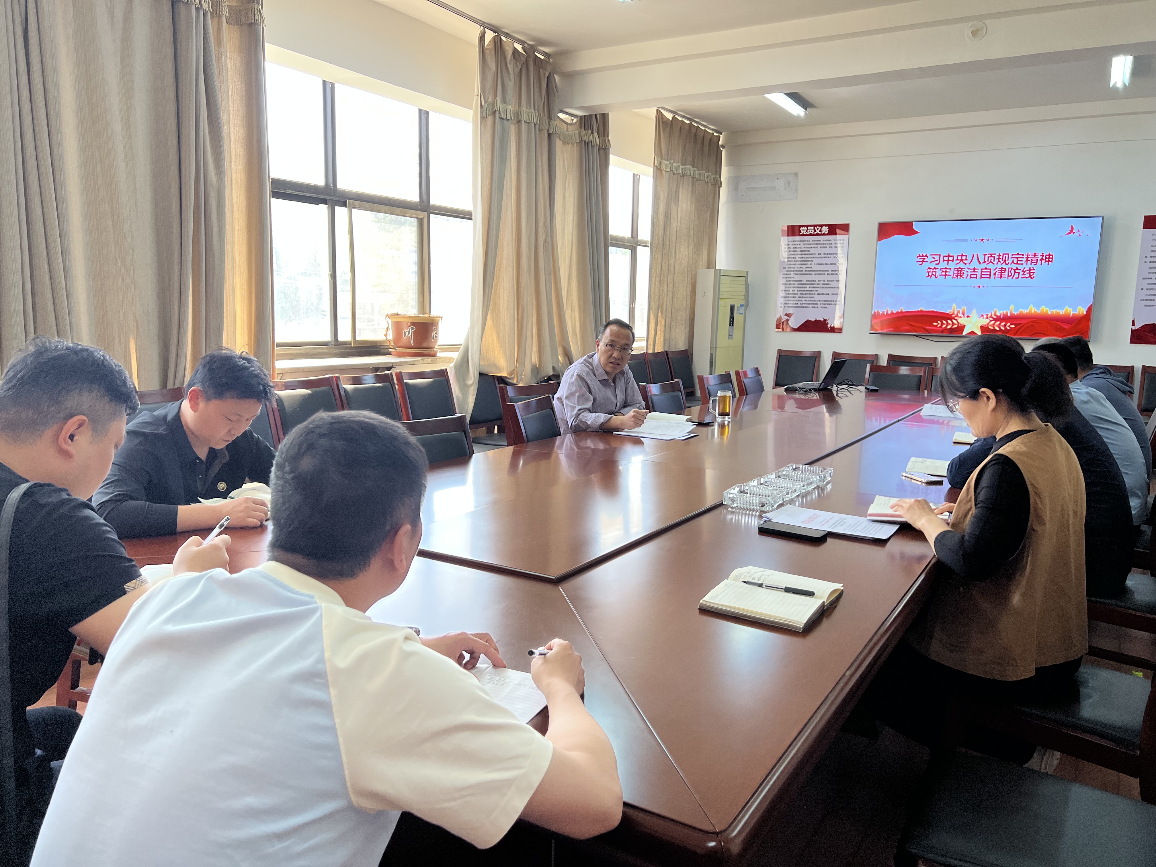 支部大会上,支部书记于泽以《学习中央八项规定精神筑牢廉洁自律防线》为题讲授党课。党课围绕中央八项规定的发展历史、重温中央八项规定及《中央列出违反八项规定清单80条》主要内容、持之以恒推进党的政治建设和党的全面领导等内容进行了详细的阐述。他强调,全体党员要深刻领会开展学习教育的重要意义,切实提高政治站位,深刻认识作风建设的长期性、复杂性,要把开展学习教育同本职工作结合起来,确保学习教育取得实效。