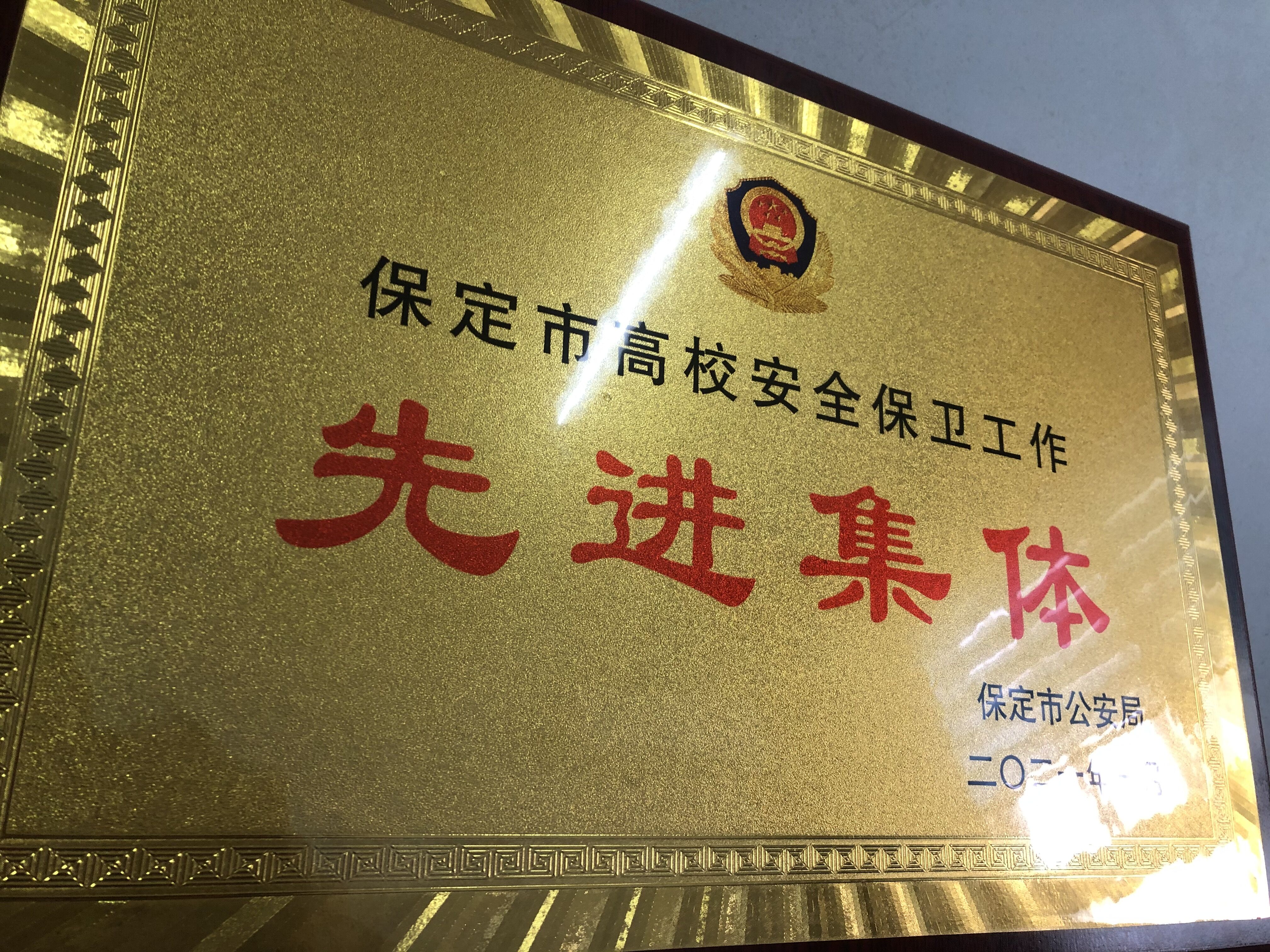 2020年,在学校党委行政的统一领导和公安部门的有力指导下,安全工作处精细管理,扎实工作,全年未发生重大案件事故和影响稳定的负面事件。校园秩序和谐,大局稳定。获得保定市公安局授予的“保定市高校安全保卫工作先进集体”的光荣称号。